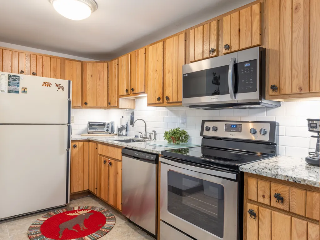 All Mountain Villas condo rentals offer whole house air conditioning, washer/dryer (laundry detergent not included), iron/ironing board, expanded cable in the main living room, dishwasher (detergent provided), bed/bath linens (soap/shampoo not included), and a fully functional kitchen that includes utensils/cookware/flatware and paper towels/trash bags/toilet tissue. No indoor fireplace usage is available at Mountain Villas.