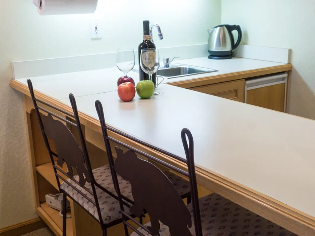 The studio includes a kitchenette with small refrigerator, counter space, microwave, coffee maker, pantry space and breakfast counter. Enjoy this cozy mountain studio. Washer/dryer located on the 3rd floor in the building.