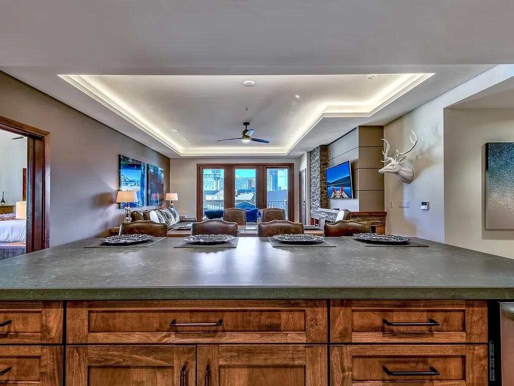 These incredible mountain modern three bedrooms offer plenty of room for everyone. Plenty of luxury, too. Enjoy cooking and dining in the gourmet kitchen with stainless steel appliances, ample counter space, and plenty of natural lighting. The living room offers a cozy yet open atmosphere offering plenty of seating for your guests. Relax on your private balcony where you can enjoy morning coffee or apres-ski refreshments. There is a bathroom for each bedroom —either attached or just outside the bedroom. In-unit washer and dryer is available for your convenience. Additionally, you have access to all Zalanta amenities and the great concierge service that comes with staying at a Heavenly operated property. All just steps away from the Heavenly Village and Gondola.